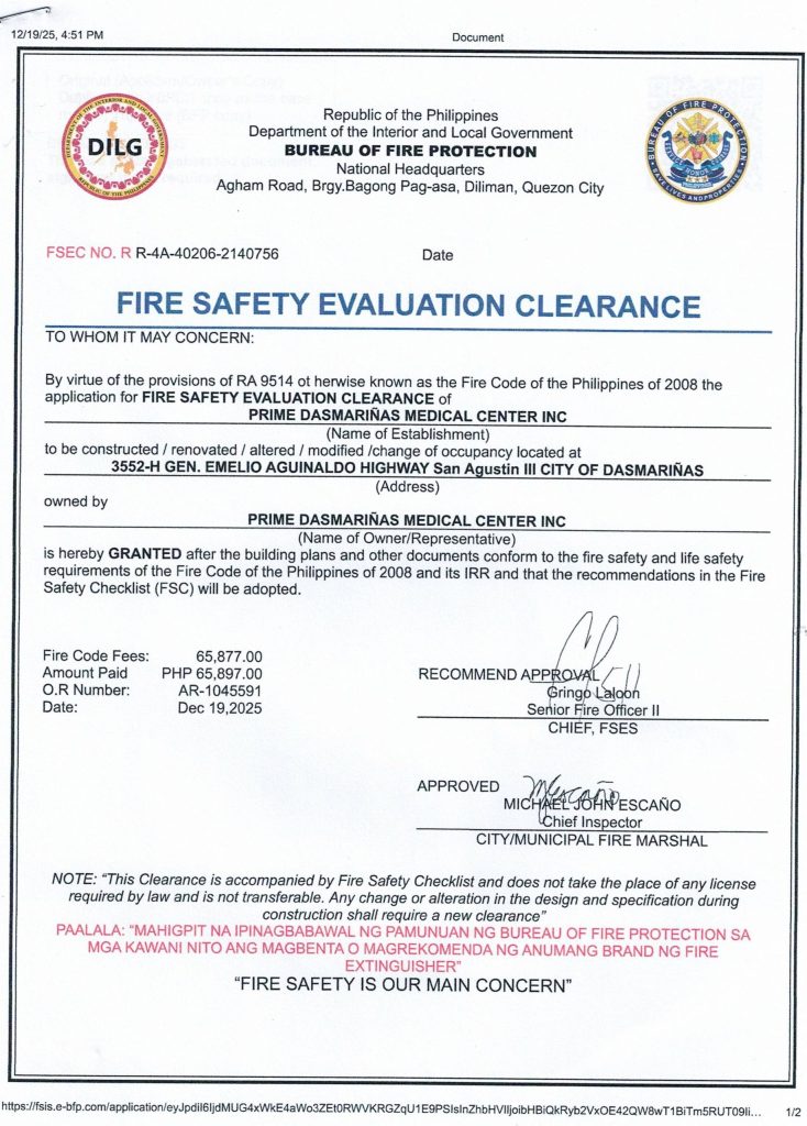 Prime Dasmariñas Medical Center (PDMC) is a member of the Prime Group of Hospitals with a goal to provide exceptional, compassionate, and affordable healthcare for all. This is a level 3 specialty referral hospital with a 130-bed capacity.