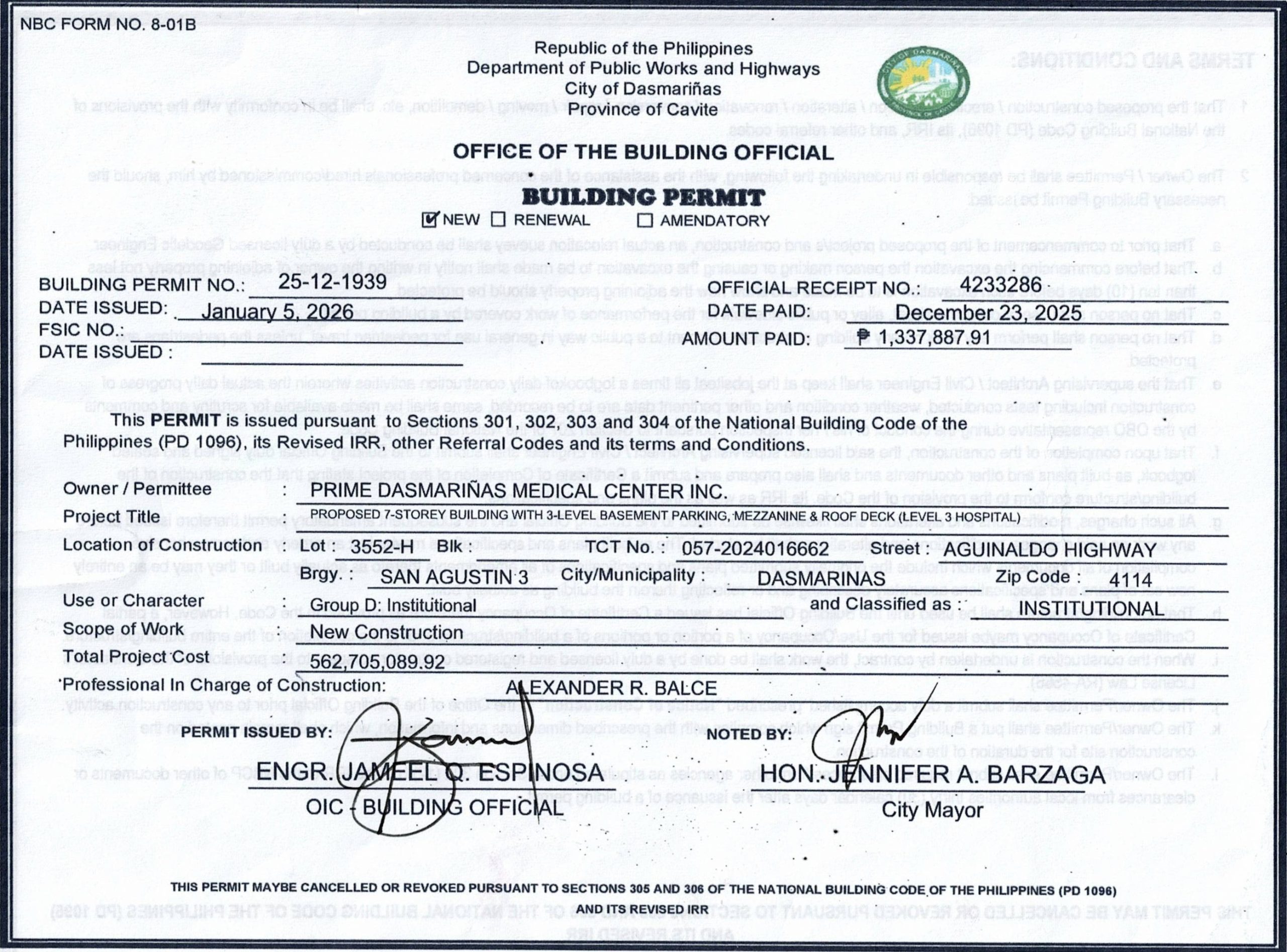 The 28th of January, 2024 marks the beginning of a dream to build a state-of-the-art hospital in the progressive city of Dasmariñas in Cavite.